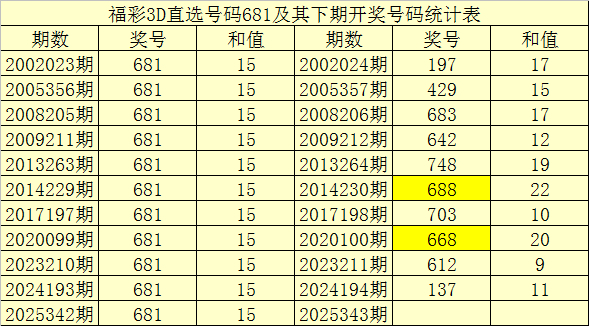 一、开奖总结:第2025342期福彩3D奖号为681。奖号奇偶比为1:2,和值为:15,跨度为:7。